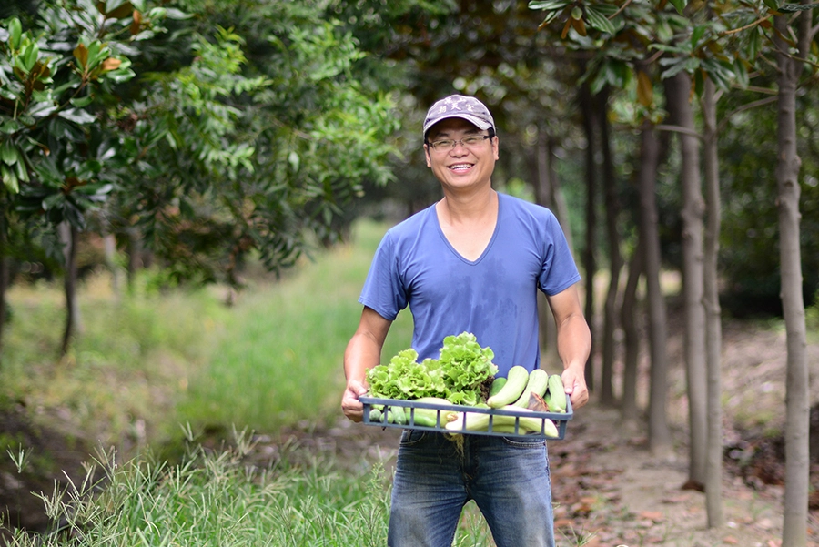 这个台湾长大的45岁农人蹲在农地里,说着虫子和杂草的事情,「不用农药化肥激素,我想把更多的放心菜给更多人吃。」